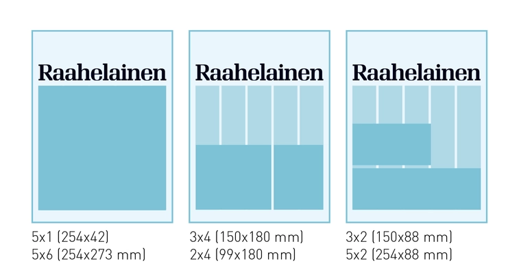 | 3 x 4, 1/4-sivu | 3 x 180 | 150 x 180 | 1 233 € |