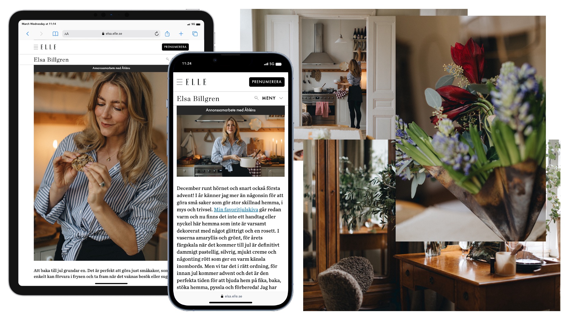 LÖSNING: Vi lanserade kampanjen Elsa Billgrens julsaga på Mosebacke – ett ELLE-koncept tillsammans med den populära inredningsprofilen Elsa Billgren. Genom enkla lösningar och Elsas inspirerande inrednings- och stylingtips skapade hon under en fotografering en stämningsfull och drömsk atmosfär i sitt hem på Mosebacke i Stockholm. Genom att integrera väl valda produkter från Åhléns sortiment skapade vi ett bra innehåll för ELLEs läsare och Åhléns målgrupp. Kampanjen presenterades som en helsida i ELLE-magasin och som en digital artikel på ELLE.se samt i en native display. För att bredda kampanjens räckvidd nyttjade vi också Elsa Billgrens starka inflytande genom att hon delade kampanjen i en Instagram-post, en story och i ett blogginlägg. Kampanjen med Åhléns och Elsa är ett bra exempel på hur vi når engagerade målgrupper genom våra 360-koncept.