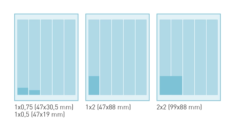 | 1x2 | 47x88 mm | 152 € |