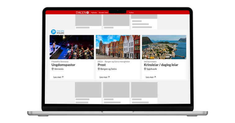- Publisering på https://stilling.dagen.no/ frem til søknadsfristen. Disse blir også vist på fremsiden til dagen.no og sendes ut til alle som er påmeldt vårt ukentlige nyhetsbrev for stillinger. Du kan melde deg på nyhetsbrevet her.