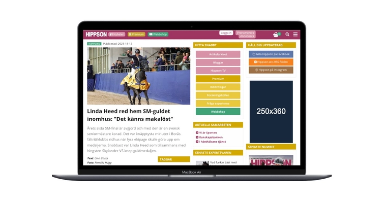 På hippson.se, Sveriges största sajt om ridsport, publiceras dagligen mängder av nyheter, reportage, tips och övningar.