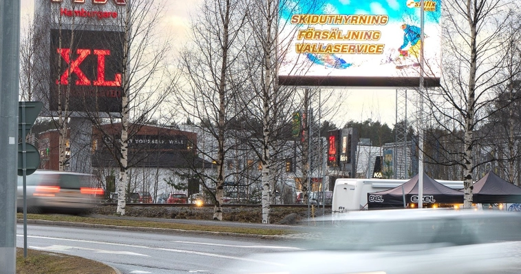 Storheden är Norrlands största handelsområde och ligger endast 8 km från Luleå centrum. Skärmen är placerad vid infarten från E4:an och går inte att missa.