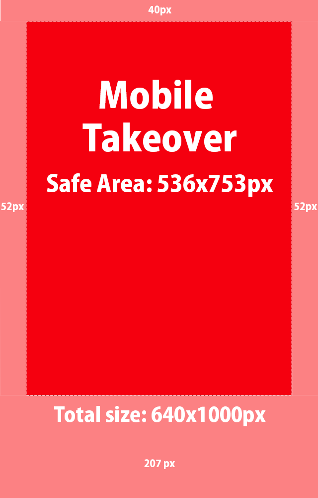 Mobil Takeover är ett responsivt format där allt innehåll som är inom safe-area kommer att visas.
